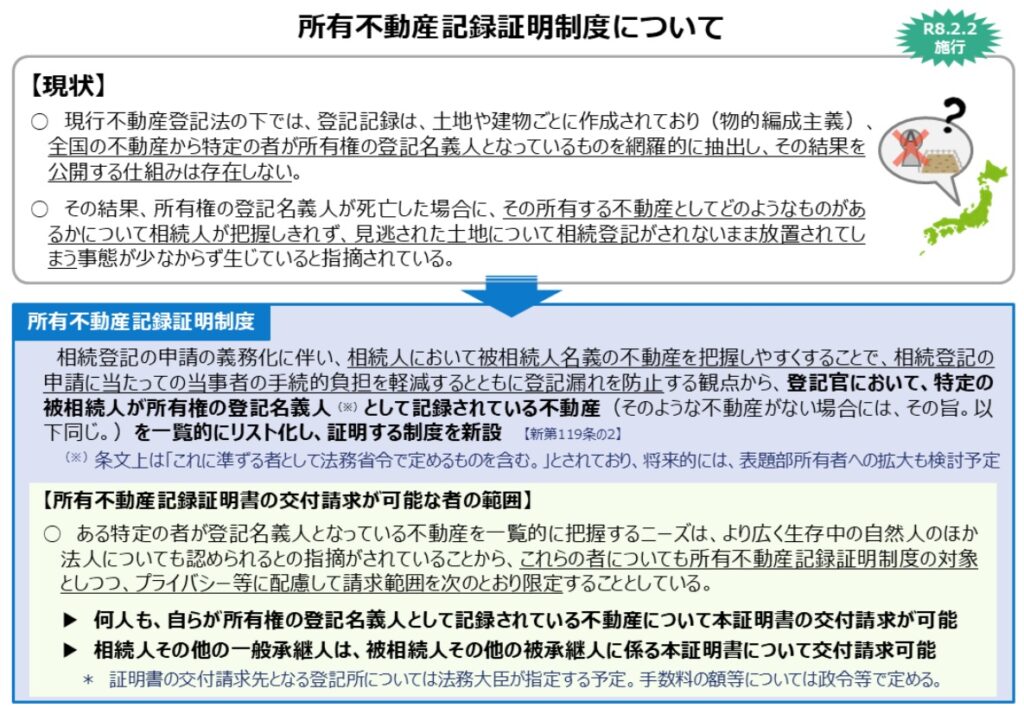 引用リンク|法務省 相続登記について 所有不動産記録証明制度(令和8年2月2日施行)